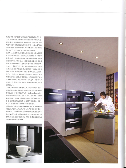 Domus China:在信息化时代的今天,家居产品和科技的结合也越来越紧密。我们了解到您参加了今年米兰家具展,针对Miele在这次米兰家具展上新发布的G6000您觉得有哪些有趣的设计点?