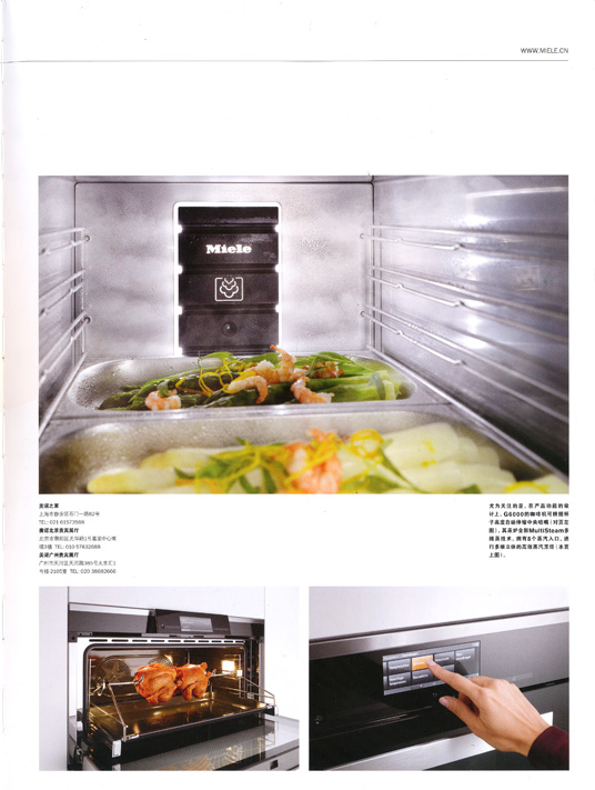 1998年他们就已经根据中国传统烹饪方式——“蒸”,研发出第一台嵌入式蒸炉,到G6000这个系列据说已经是第七代的蒸炉了。它的温控非常精准,可以在40-100摄氏度之间进行调整控制。使用起来也非常便捷,无需外接水源,只要将自带水箱注入新鲜自来水,然后通过机内的外置蒸汽发生器,快速产生纯蒸汽注入腔体烹饪,多余的蒸汽还会通过冷却装置巧妙排出,安全人性。还有油烟机,平时藏在橱柜里,通过遥控器自如收放。这些设计你可以像欣赏一辆豪华车一样去享受它带来的生活体验,这种产品体验代表了现代以及未来的生活方式所追求的生活品味。