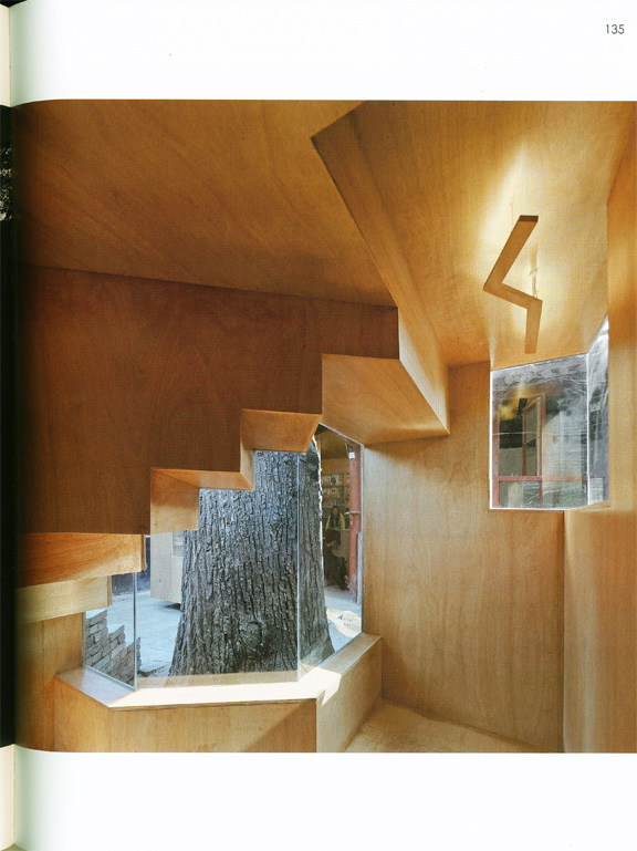 최근 추거지 개선을 이유로 이러한 공간들을 없애고 있지만, 이는 당 시 시민의 삶을 엿볼 수 있는 매개체이기에 보존할 만함 가치가 있다. 때문에 한때 12세대가 공유했던 집을 대상으로 한 이 작업에서는 이 러한 공간에 새로운 용도를 부여함으로써 공간을 재생시킨다. 대문을 들어오면 가장 먼저 커다란 물푸레나무가, 다음으로는 나무를 감싸고 있는 벽돌 건물이 눈에 띈다. 주방이었던 이곳은 6㎡의 조그 마한 예술 공간으로 탈바꿈했는데, 전통 회벽돌을 사용한 덕분에 기존 건물들과 어색함 없이 어우러진다. 또한, 바깥의 벽돌 계단을 따라 지 붕에 올라가면 고목의 나뭇가지와 잎사구를 가까이서 바라볼 수 있어, 마치 나무 위에 앉아있는 듯한 착각이 들기도 할 것이다.