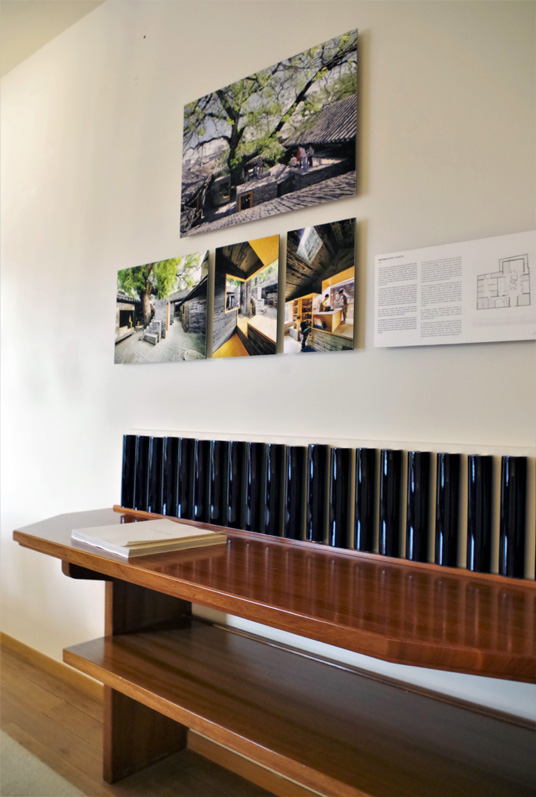 At Maison Louis Carré, the exhibition is mainly focused on two types of works: Zhang Ke’s projects in Tibet, on one hand, and his interventions in the hutongs of Beijing, on the other hand. These projects are presented through models, photographs, plans and drawings, placed in the hall, the dining room and the living room of the villa.