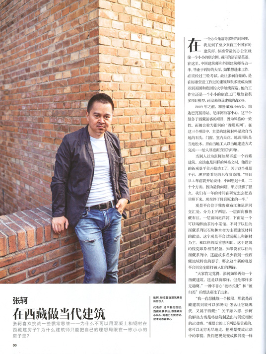 张轲喜欢挑战一些惯常思维——为什么不可以用混凝土和钢材在西藏建房子?为什么建筑师只能把自己的理想局限在一栋小小的房子里?